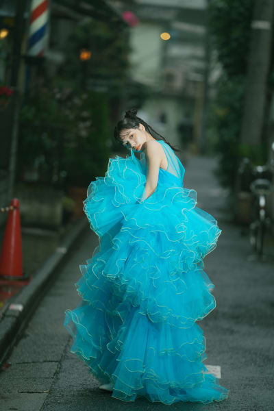 パキッとしたライトブルーがシンプルな背景に映え、ボリュームあるチュールを持ったポージングがなんとも言えない可愛さでオススメですo○