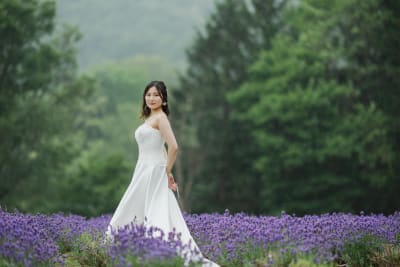 特にウェディングドレスの白が美しく引き立ち、優しい透明感のある写真に。