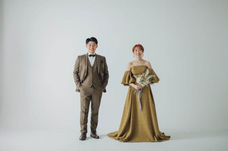 シンプルなスタジオ撮影だからこそ可能な、お二人らしいオリジナルの写真が生まれました。