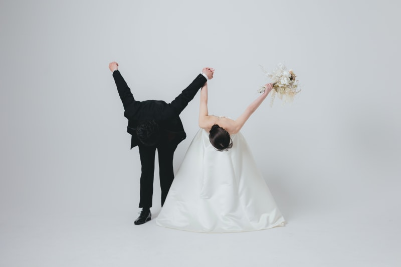 白背景のウェディングフォトは、「引き算の美学」が際立つ撮影スタイルです。