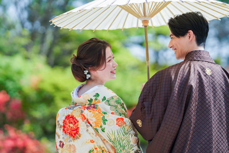 和装の魅力が引き立つ日本庭園でのフォトウェディング、ぜひご検討ください^^