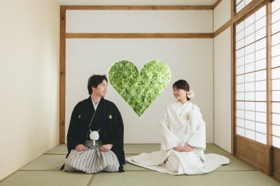 屋内庭園で伝統的なスタイルのウェディングフォトはいかがでしょうか?