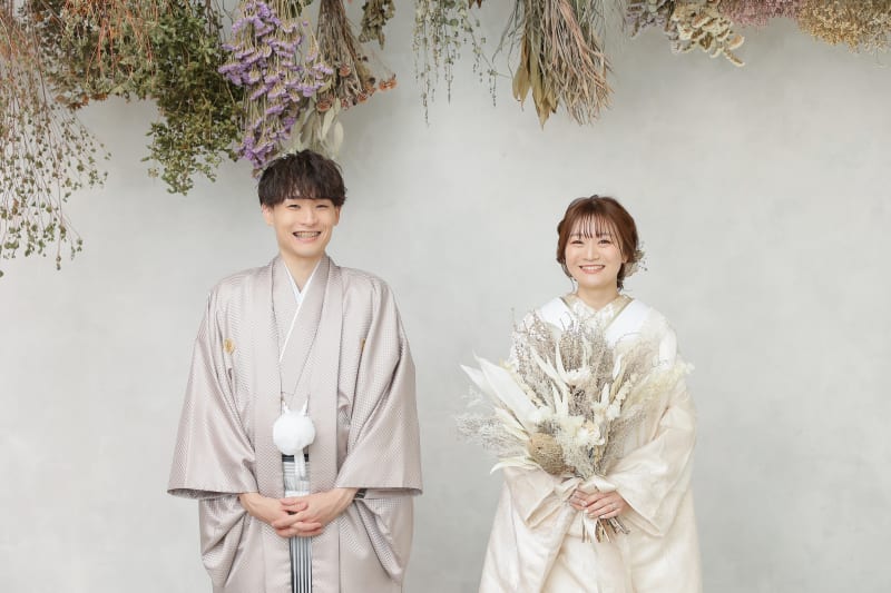 ご新郎様のお衣装も明るいグレーで、お写真全体の雰囲気も柔らかくなっています♫