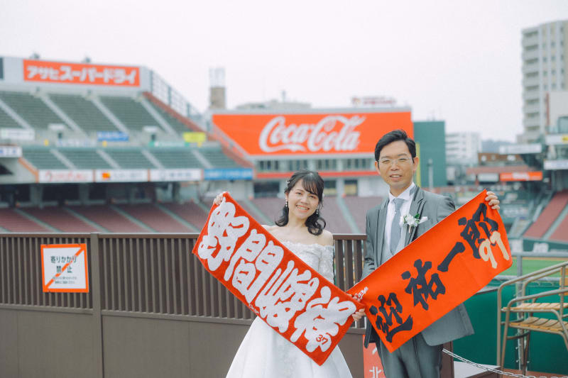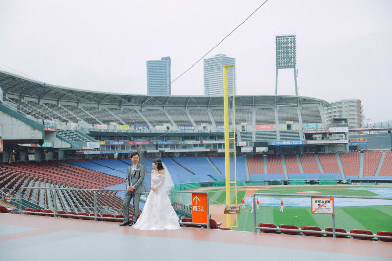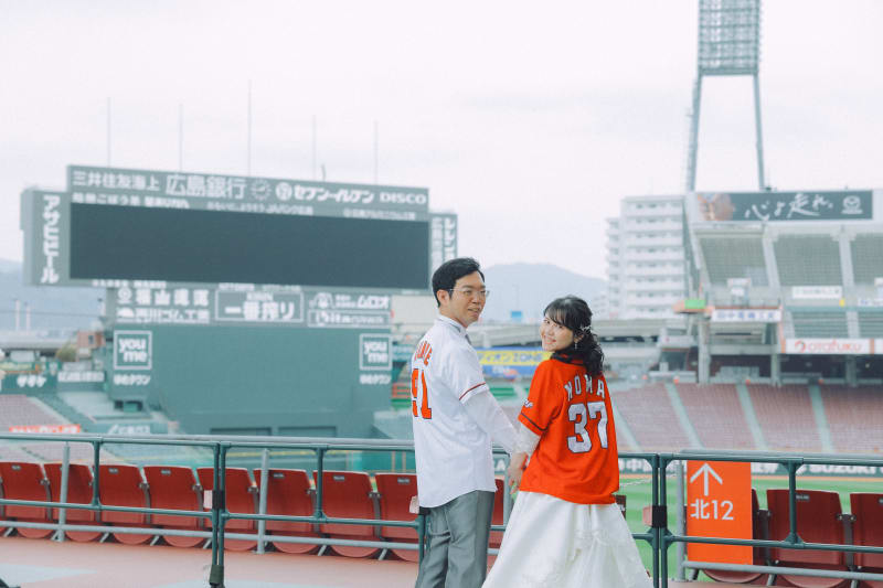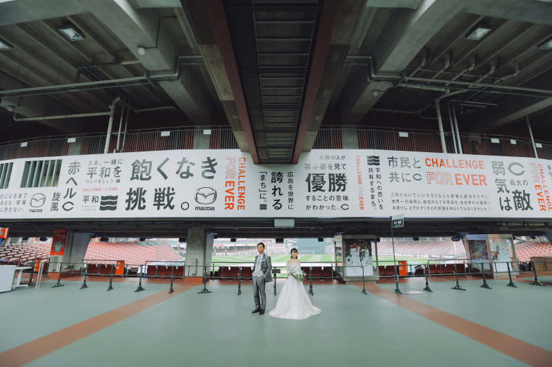 マツダスタジアムは、広島市南区に位置しており、野球の試合があるとたちまち賑わう広島唯一の野球場となってます♪今回、そんな球場に野球好きのおふたりのお写真のお手伝いをさせて頂きました!!