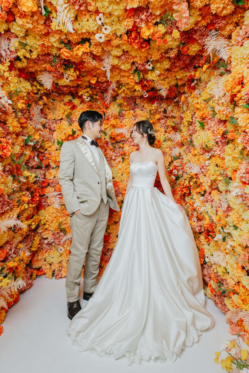 スタジオのフラワーボックスで、チャペルと雰囲気のがらっと異なる写真も!