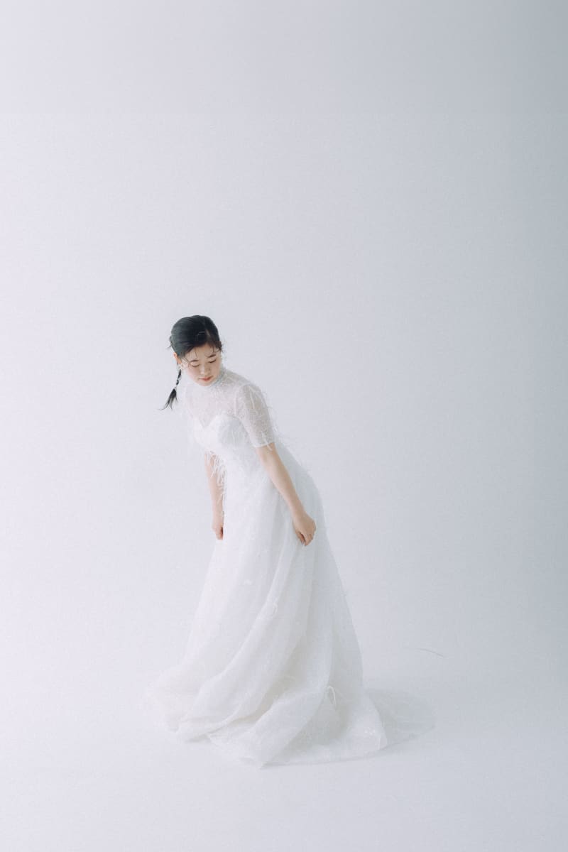 こちらのドレスは、ふわふわとした羽が沢山付いていて今にも飛んでいきそうな可愛らしいドレスです。