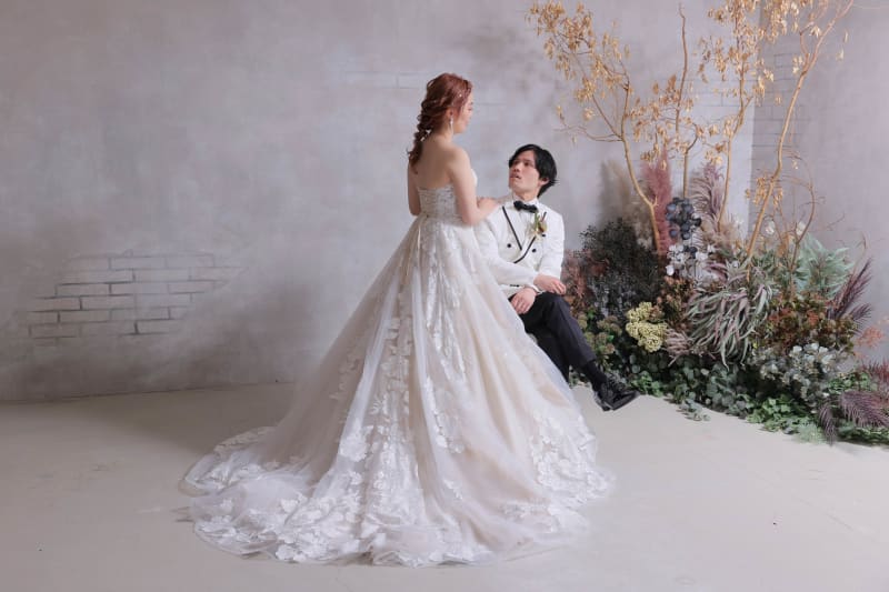 落ち着いた色味の花々で構成された背景も用意されており、一つの空間で様々なバリエーションの撮影が可能です。