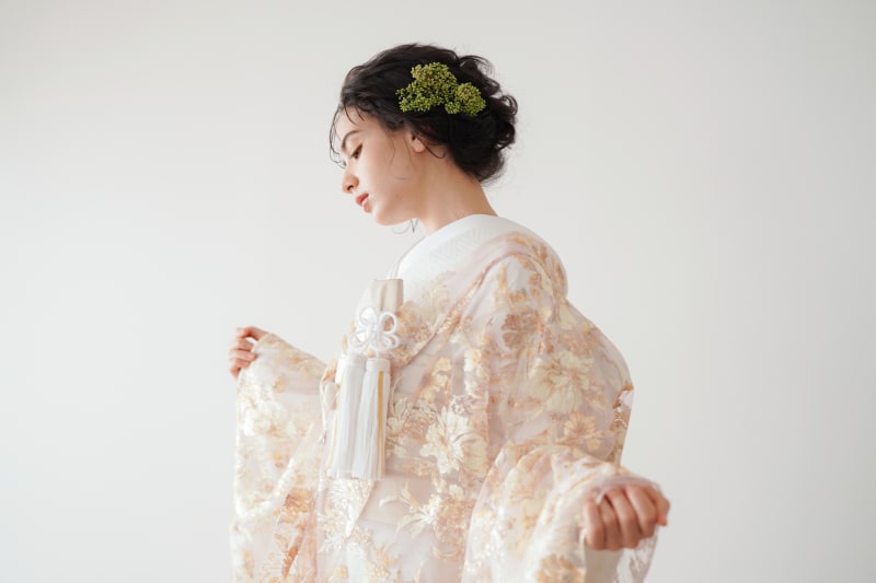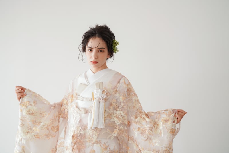 また、ビジューが繊細なインポートレースや、上質なジャガード生地を主役にした、軽やかさと華やかさがあり、白無垢や色打掛とはまた違った魅力をもった打掛となっています。