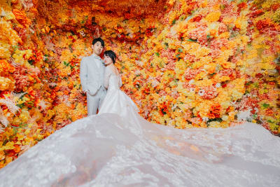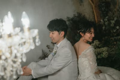 おふたりのイメージに合わせて、スタジオの各シーンを活用しながら、特別な一瞬を引き出すことを心がけました。
