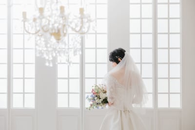 新婦さまのショートヘアには、さりげない髪飾りが素敵なアクセントとなり、シンプルでありながらも印象的なスタイルが際立っていました♪