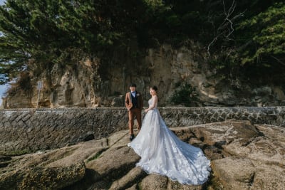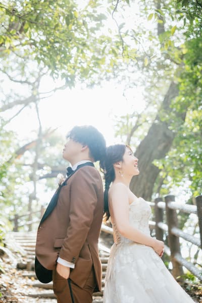 海岸を包む新緑も見事で、空や海の鮮やかな色と相まって、おふたりの幸せそうな笑顔がさらに輝いていました。自然の中でおふたりの素晴らしい瞬間を切り取ることができたこと、心からうれしく思います!