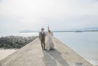 今回は、笑いの絶えない仲良しなおふたりのウェディングフォトを元宇品海岸で撮影させていただきました!