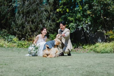 ペットも一緒にバージンロードを歩いたり、おすまし顔で並んで撮影したりと、思わず笑顔になるワンシーンが叶います。