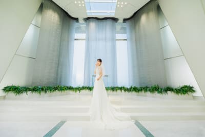 まるで水に包まれているような、白を基調とした明るいチャペルは、清らかな空気感が魅力。