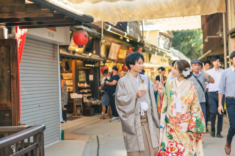商店街での食べ歩き撮影や紅葉谷での撮影も可能です♪