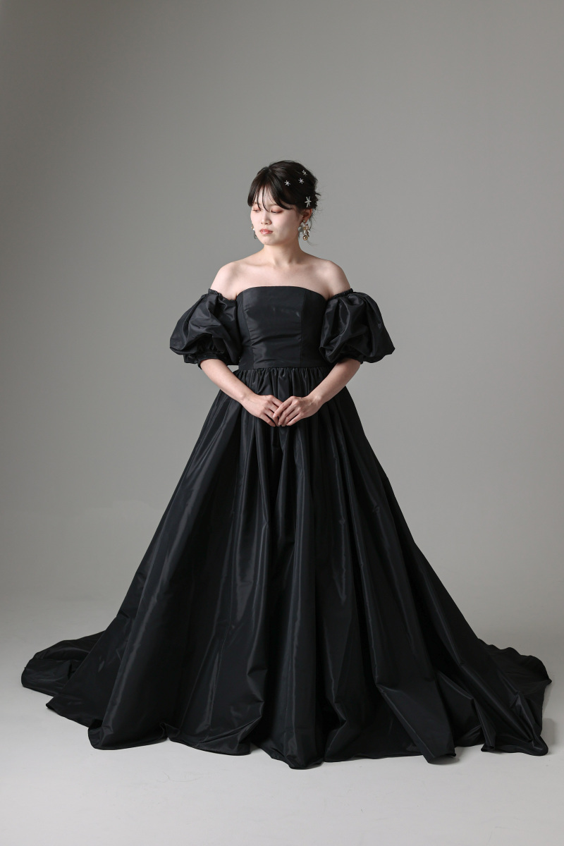 トレンドを押さえたブラックカラーにパフスリーブデザインでスタイルアップ!