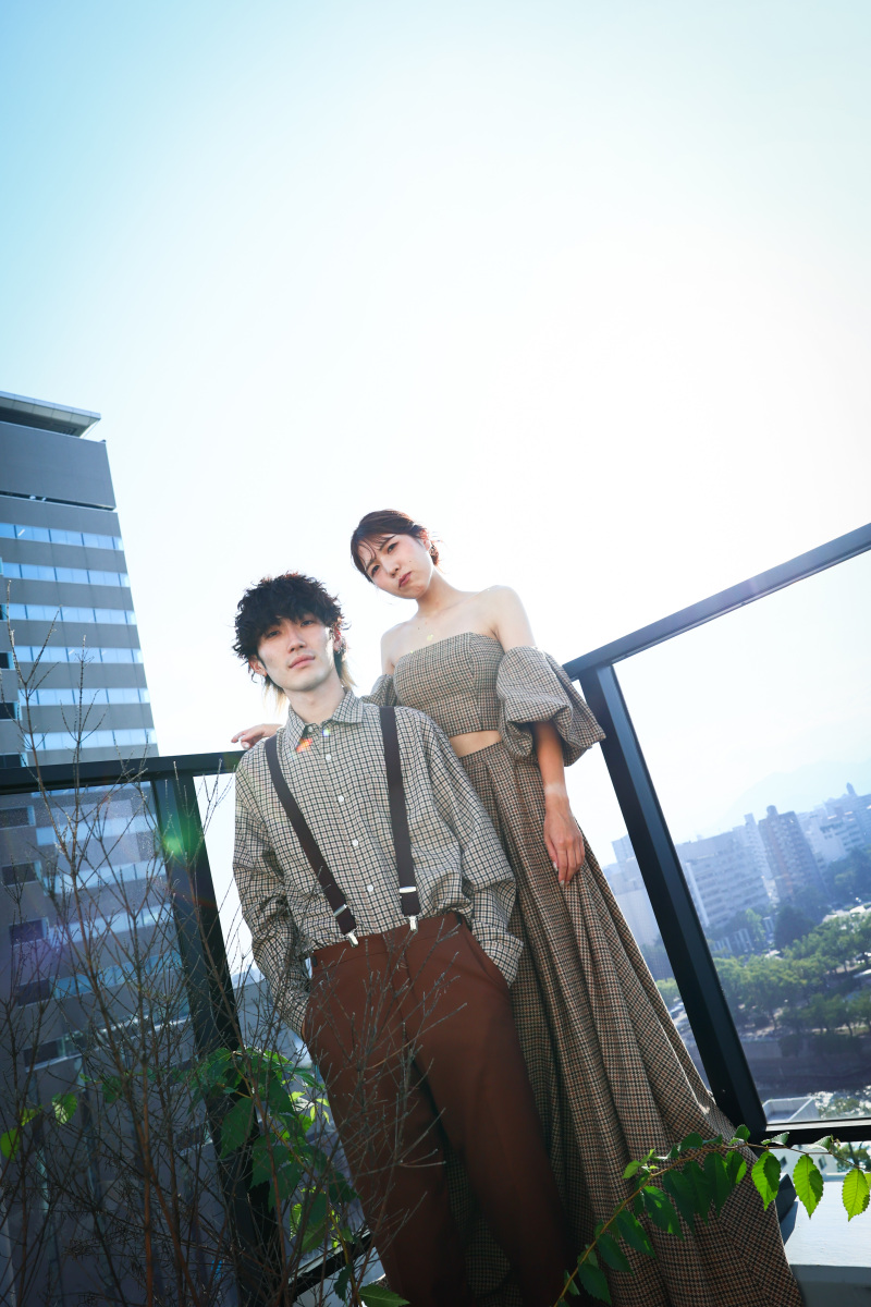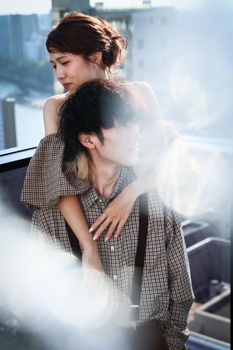 古着テイストのブラウンチェックを二人でまとい、都会の喧騒を背景に、まるで映画のワンシーンのようなストーリーを映し出します。かしこまりすぎない、おふたりらしい雰囲気で撮影いただけます。