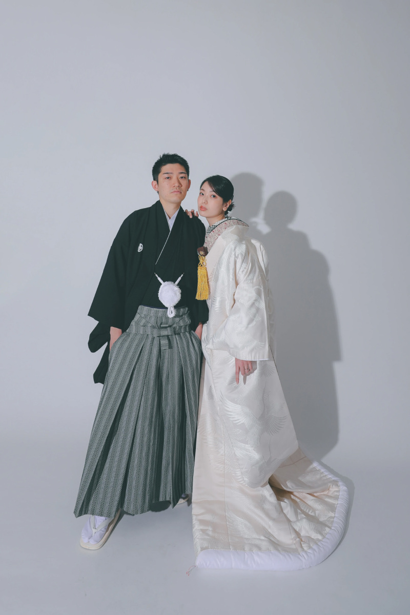 そして、和傘を差し、佇むおふたりの姿は、映画のワンシーンのように趣深く、凛とした美しさを引き出します。