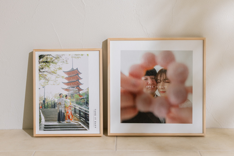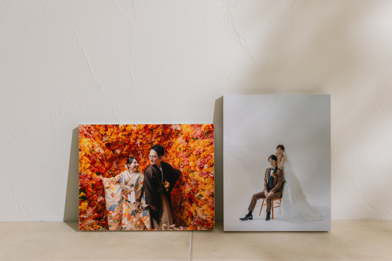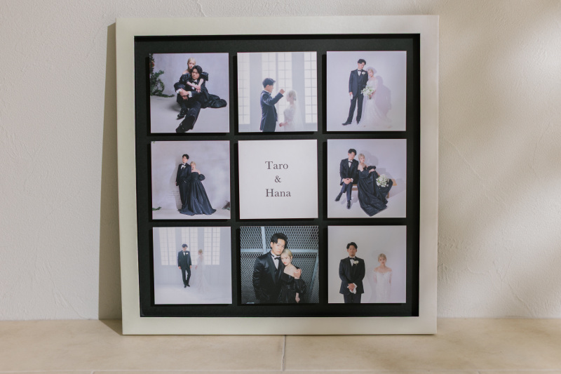 何枚ものベストショットを、お二人のお名前と一緒にギュッと凝縮できるのが魅力です。そのまま飾るだけで、お部屋に特別感あふれる素敵な思い出のコーナーが完成します!