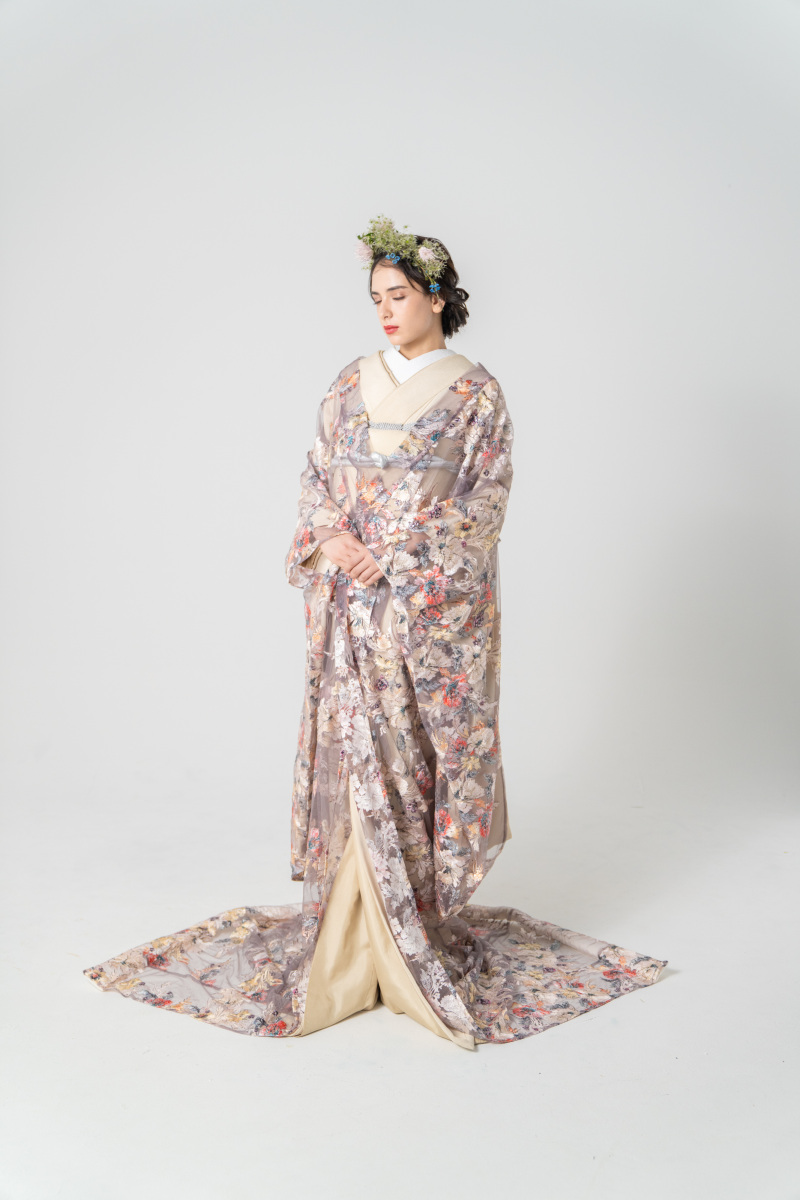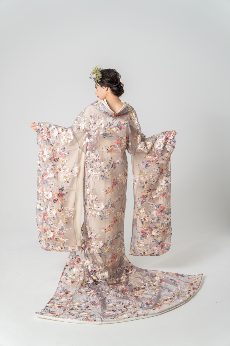 MARLEとは当社オリジナルの着物の伝統を生かしながら、透明感のあるオーガンジーの生地を使用した新和装の打掛です。