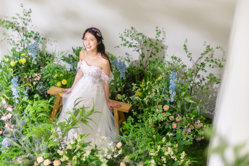 「かしこまらずに可愛く!」を叶える、アットホームでリラックスできるガーデンスタジオです。アンティークの小物と優しい色味のグリーンが、おふたりのナチュラルな笑顔を引き出します。幸せいっぱいの瞬間を、絵本のような空間で残しましょう!