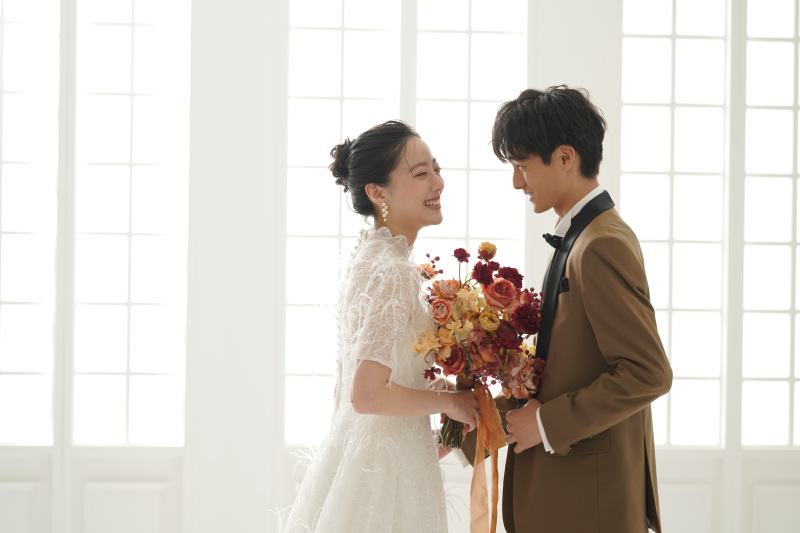 ピュアな白を基調としたシンプルなスタジオは、おふたりの自然な愛らしい瞬間を引き出す魔法の空間です。遊び心あるポーズや小物も、アートのように際立ちます。流行に左右されない、タイムレスな美しさをぜひ手に入れてください。