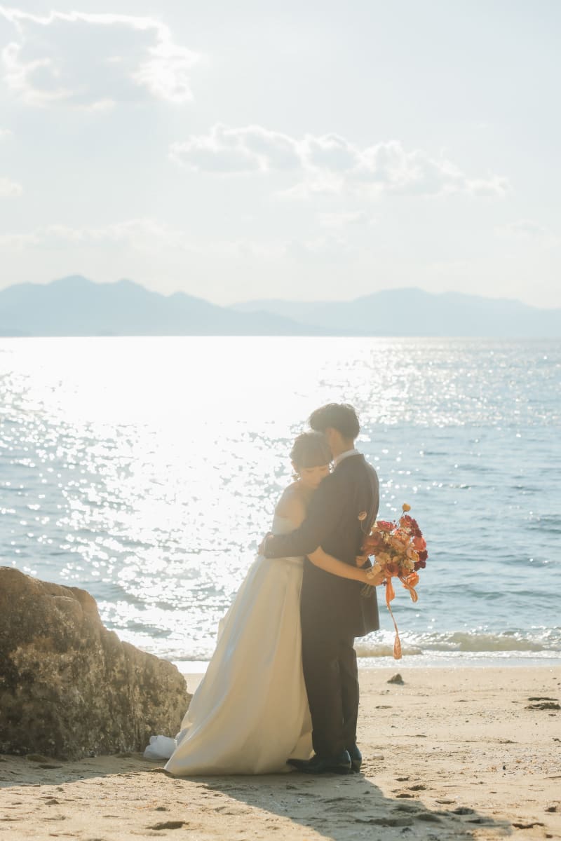 大自然といえば、たくさんあるイメージだと思いますが、今回のように、砂浜で海を見ながら撮る機会はないと思うので一生のウェディングフォトにどうですか?もし興味のある方は、ぜひ一度ご相談してみてください!