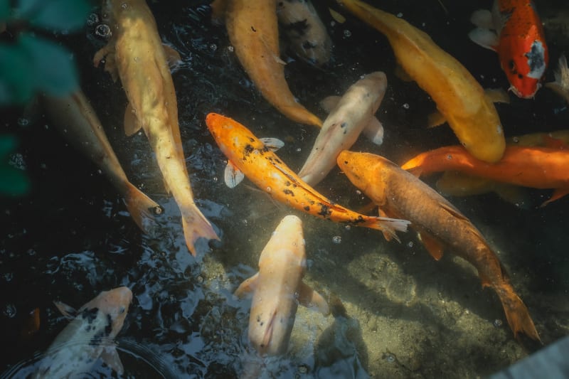 縮景園の池には、鯉やフナ、ボラやチヌな度が同居しています。鯉を眺めながら、憩いの時間を過ごすこともできるのが縮景園の魅力
