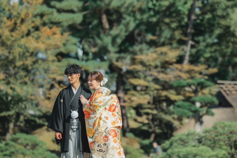 憩いの場所縮景園で癒されながら、お二人のかけがえの無い瞬間を一緒に残しましょう。また雨天の場合は、スタジオでの撮影も可能ですので臨機応変にご対応可能です。