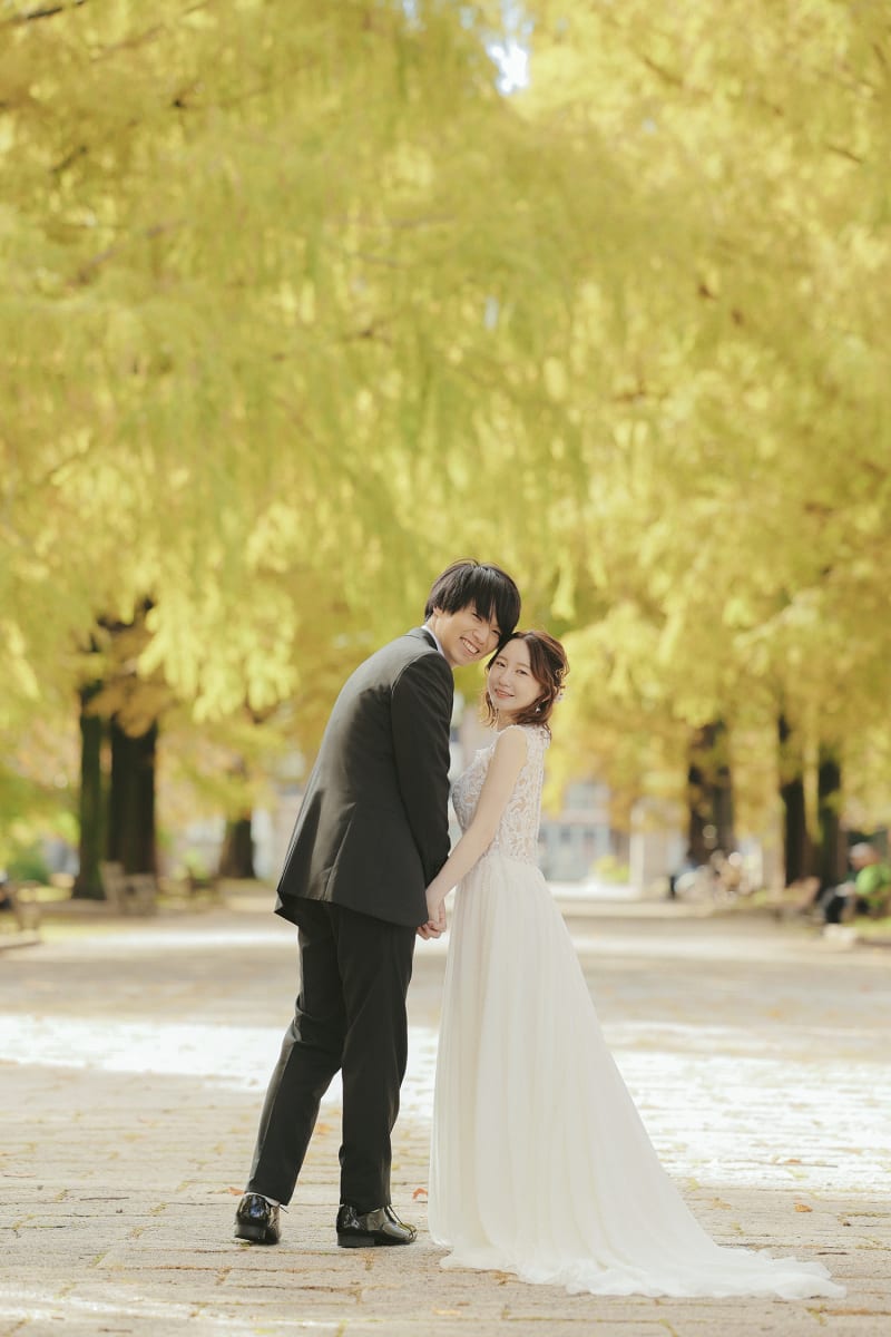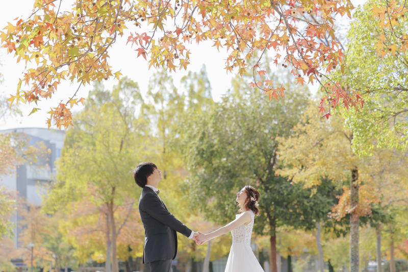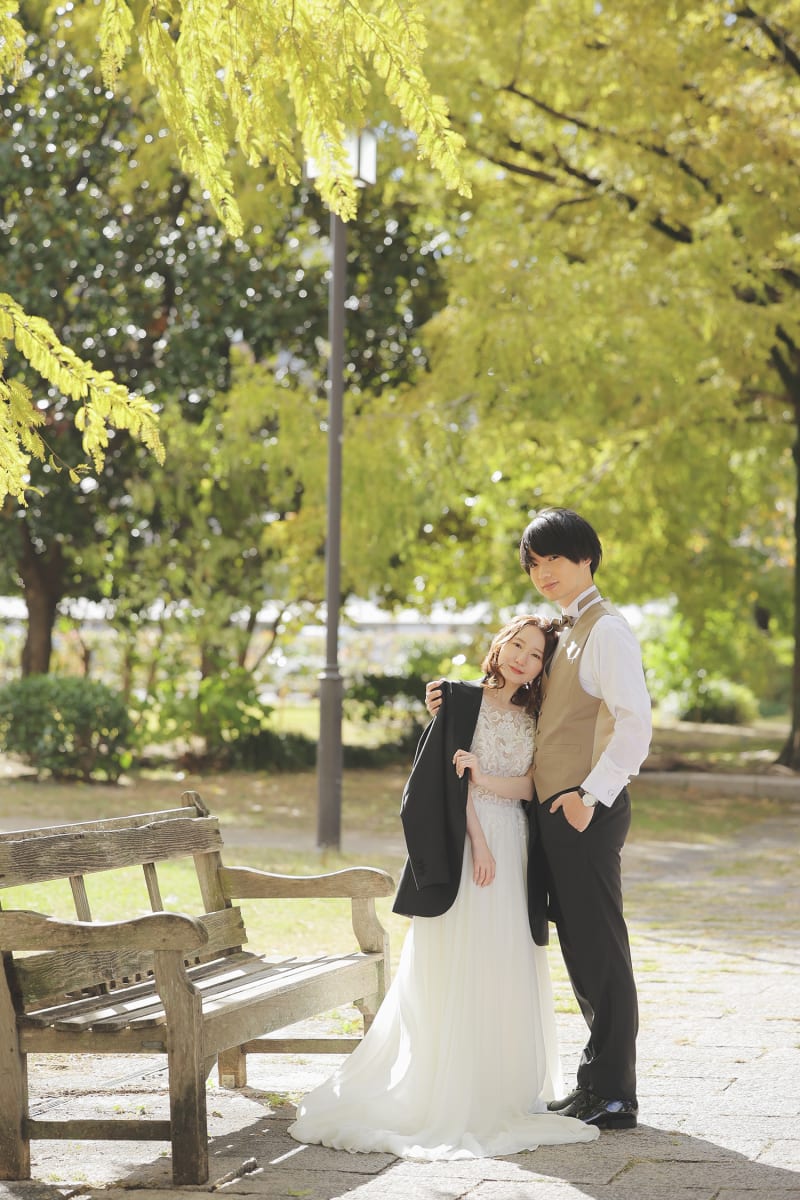 お二人のように、少し遊び心も混ぜながら自然で溢れた公園の中で楽しく撮影をしてみませんか?
