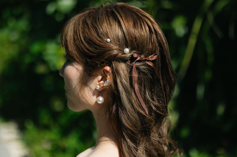 リボンで派手すぎないナチュラルな雰囲気に♡