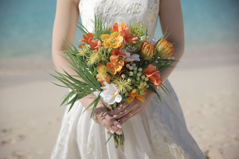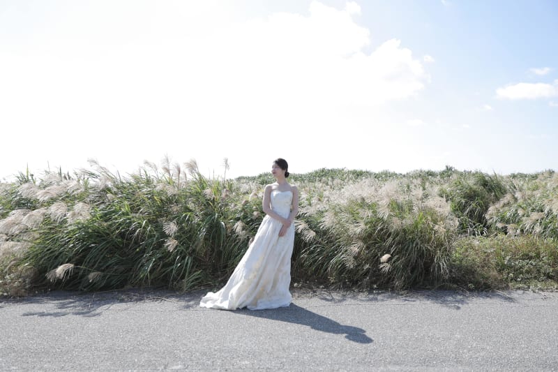 宮古島で唯一秋を感じたススキと一緒に新婦様ソロカット