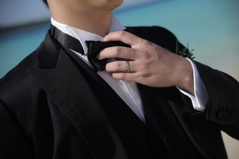 黒のタキシードで蝶ネクタイを直すシーンもかっこいいですね。