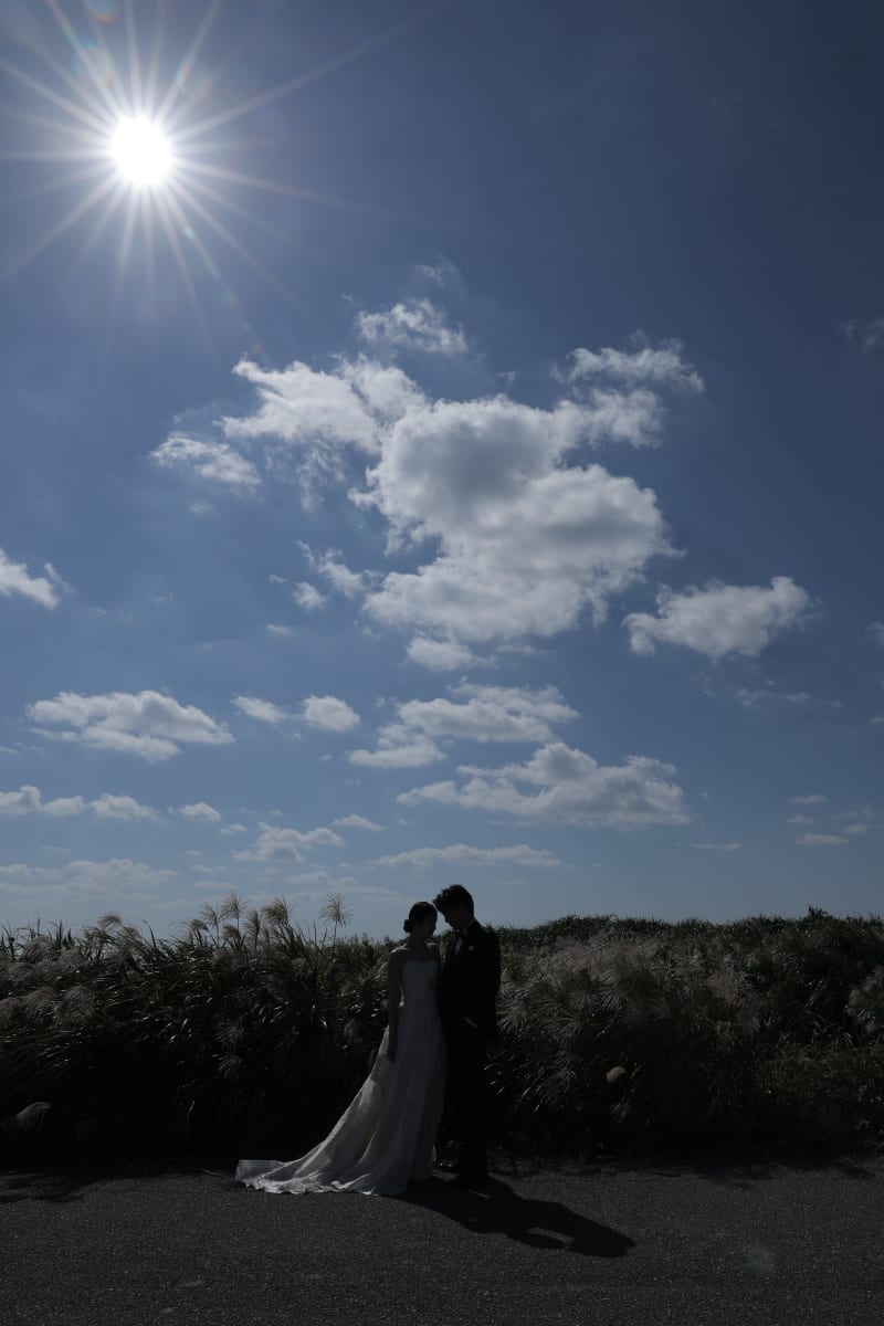 太陽の光芒を入れながらシルエット撮影 大人な雰囲気でした。