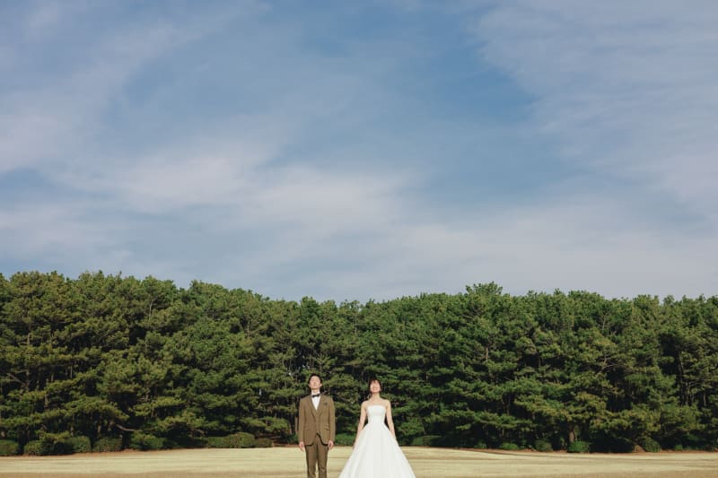 新郎さんと新婦さんを真ん中に立ってもらって広々した写真を撮ることができます!