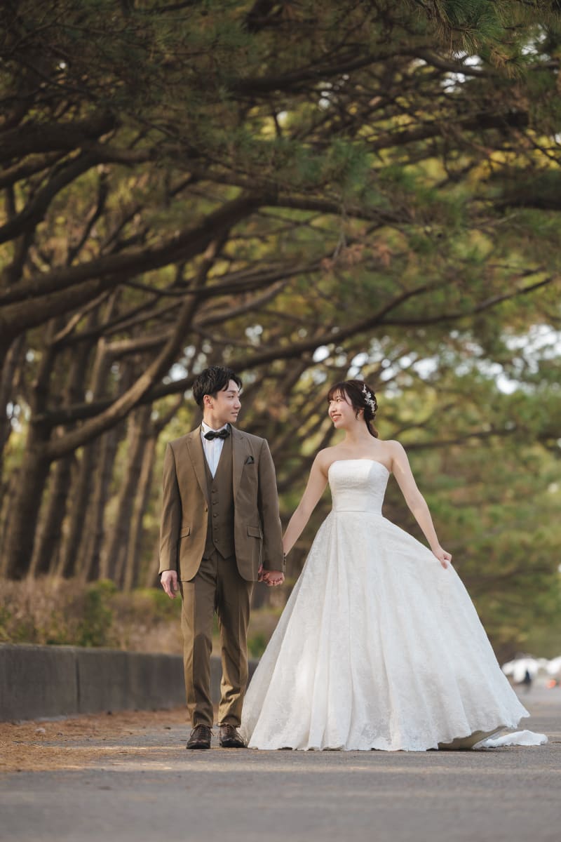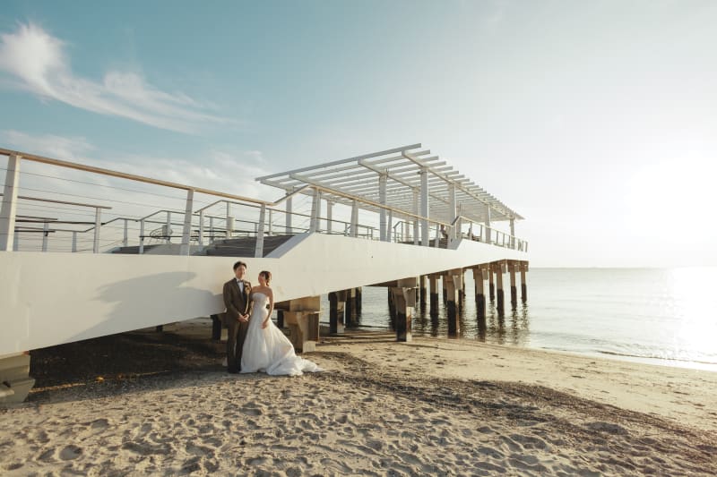 空と海と木の3要素を入れてお二人が目立つような写真を撮ることができます!!