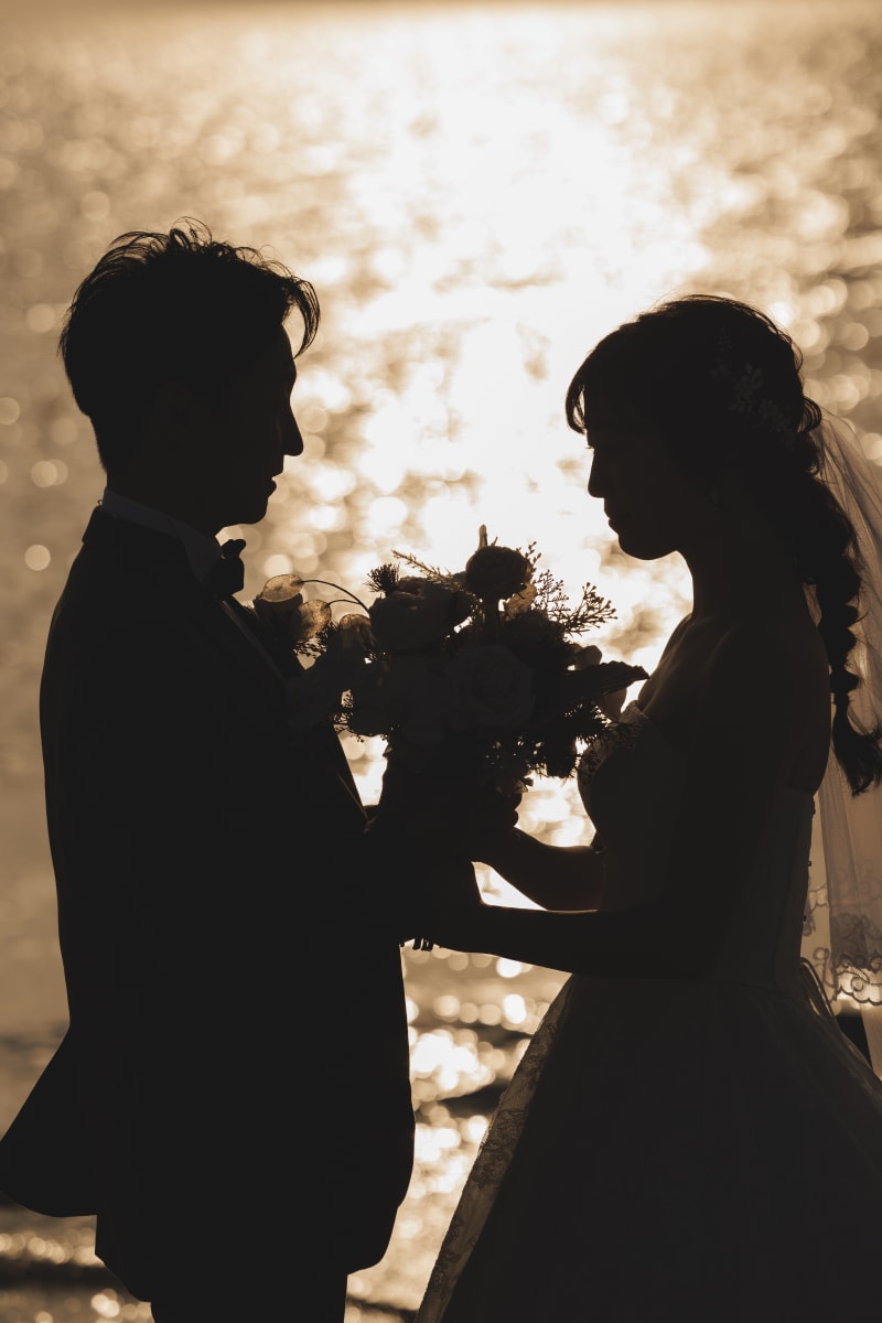 水面のキラキラをバックにシルエットの写真を撮ることができます