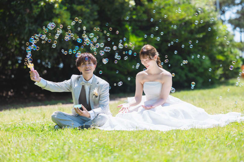 お二人持ち込みのシャボン玉で遊んでいるショット