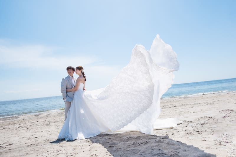 トレーンの長いドレスを活かした写真です!!