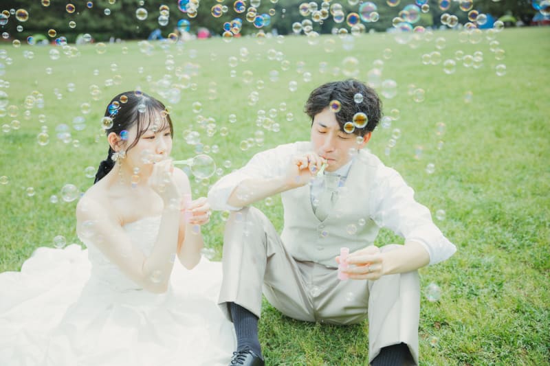 続いてシャボン玉を持ってのショット♪シャボン玉など小物をお持ちいただいての撮影もできます!