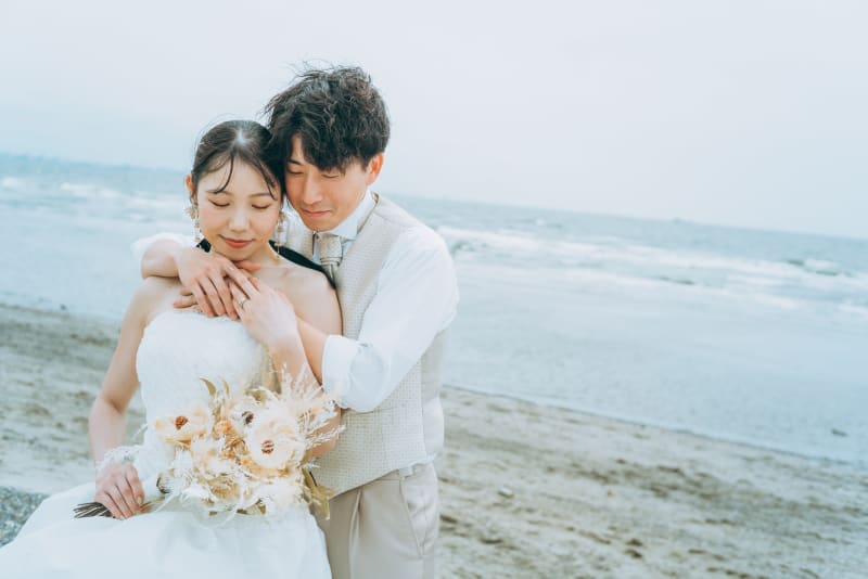 バックハグでとても素敵なお写真♩お二人らしい雰囲気のお洒落な一枚となりました!