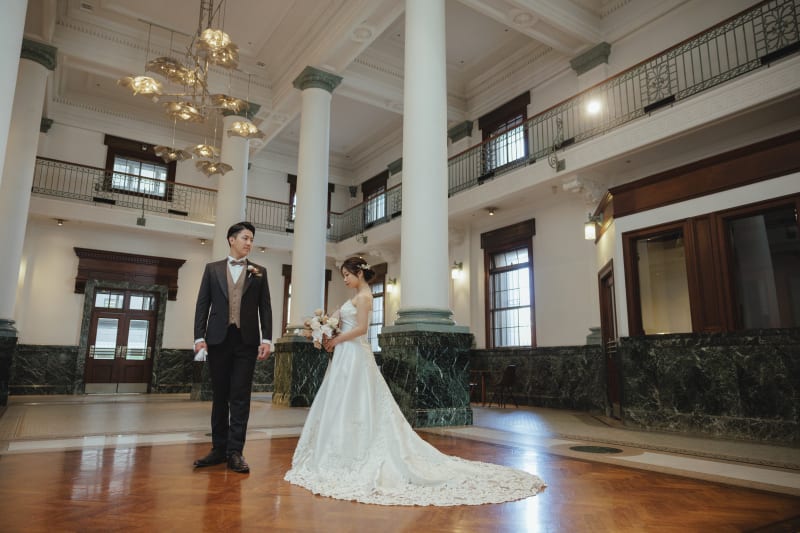 レトロでクラシカルな雰囲気で、床にはドイツ製のモザイクタイルが使われており、足元まで綺麗にお写真が残せます。
