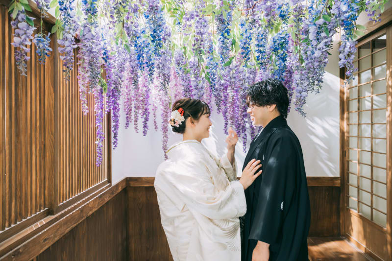 藤の花のところで撮るとこで白無垢が映えます!!