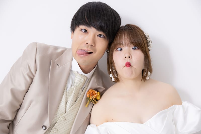 新郎さんの腕に抱きついている新婦さんかわいい!