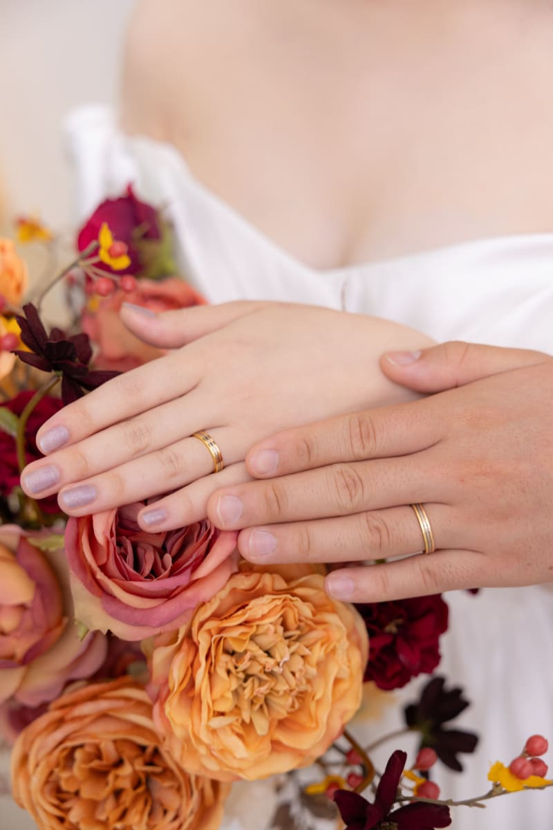 お二人のゴールドの指輪が光に当たって輝いてとっても綺麗です