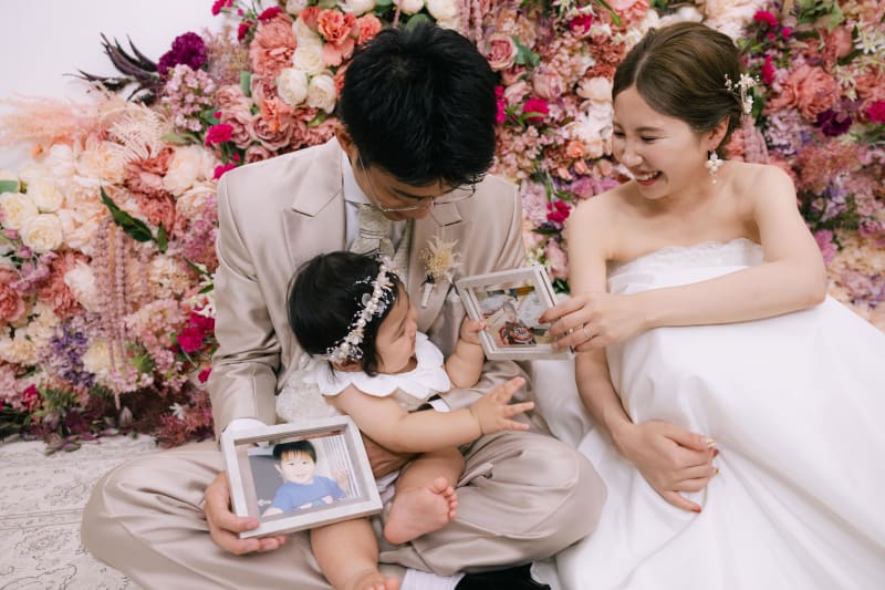 おふたりの幼少期のお写真と一緒に撮影をしました!