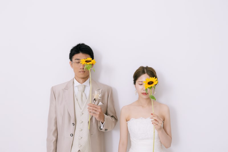 ひまわりの生花をお持ち込みいただいたおふたり。