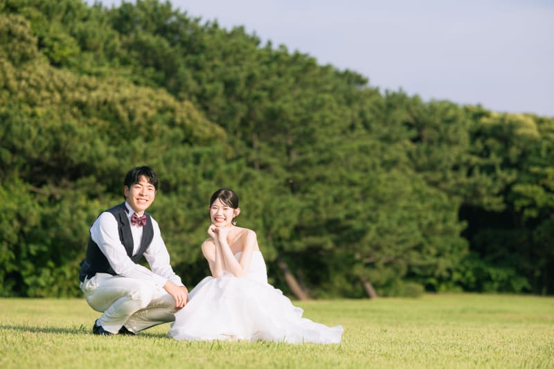 芝生に座っても可愛いですよね!自然豊かな撮影スポットです!