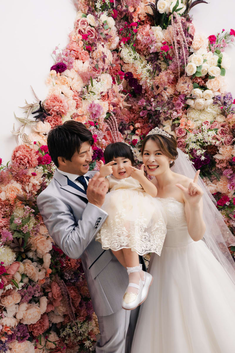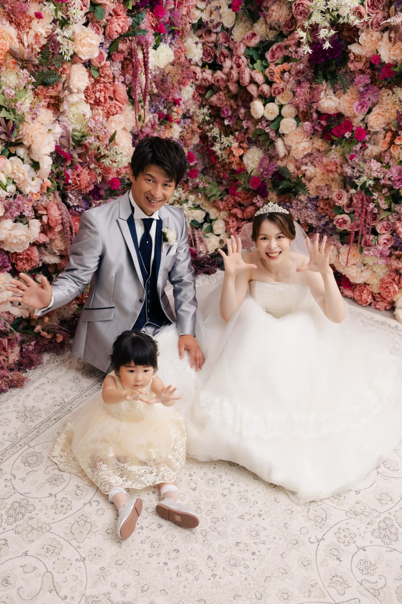 お花がいっぱいの壁でファミリーショット!!