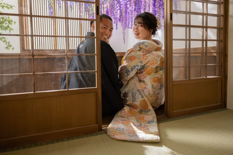 新婦さんのソロショットでは格子の前に立ってもらいました!